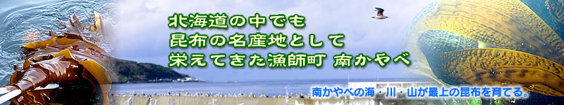 昆布のふるさと函館・南かやべの町は、6割の人が漁業に関わり、中でも昆布に携わる割合が高いことで知られています。夏場の昆布漁最盛の時期を頂点に、多くの人が、おぼろ昆布・とろろ昆布の製造や昆布の育成に日々励んでいます。町をあげて昆布づくりに精力的に取り組む、まさに昆布の里にふさわしい町です。 |
